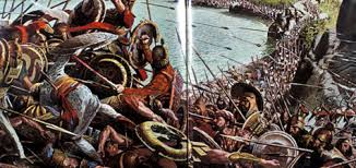வீசியபடி உள்ளன. பகைவர்களைக் குத்தியதாலும்,கேடயங்களோடு மோதியதாலும் நுனி